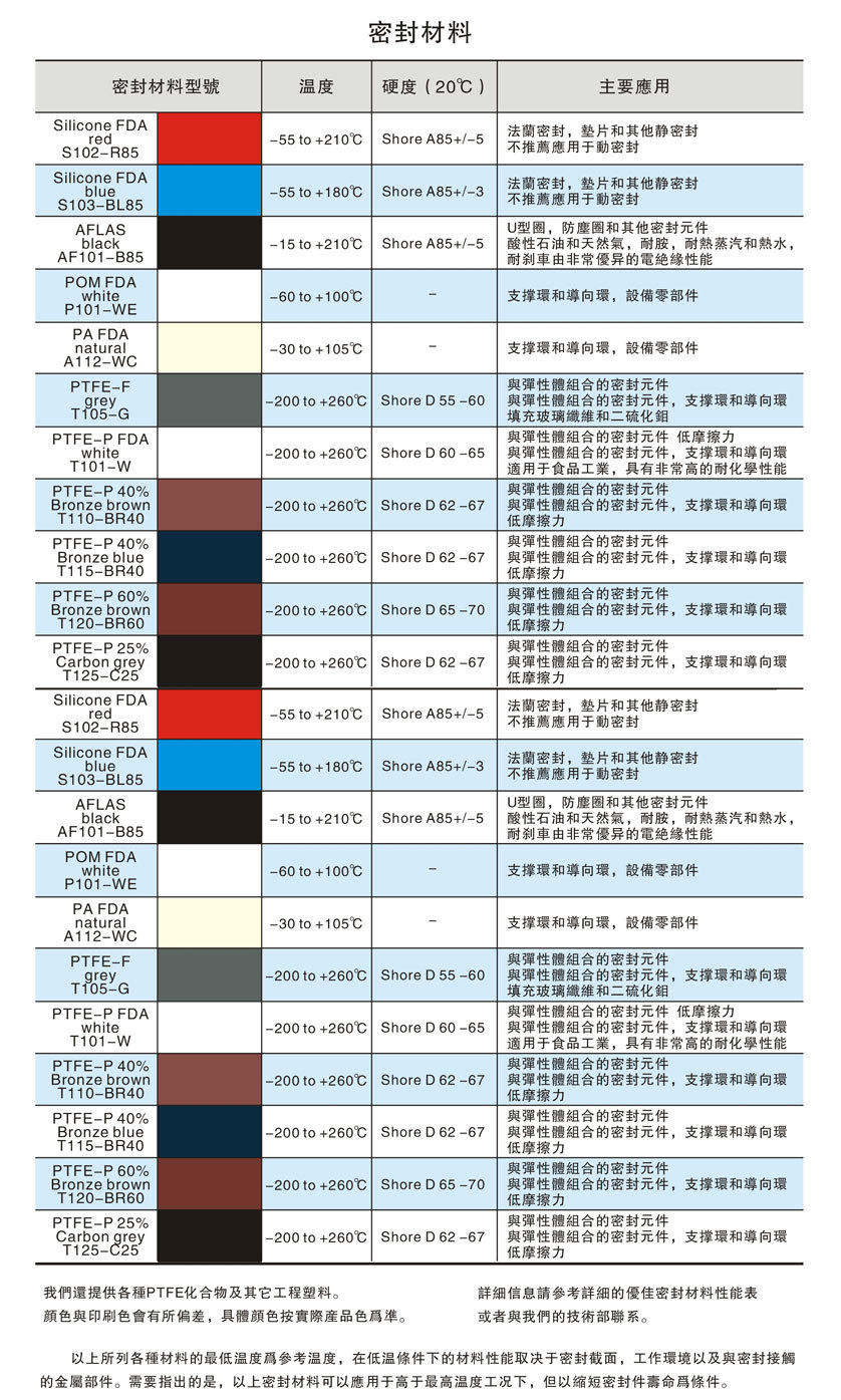 密封材料一覽表